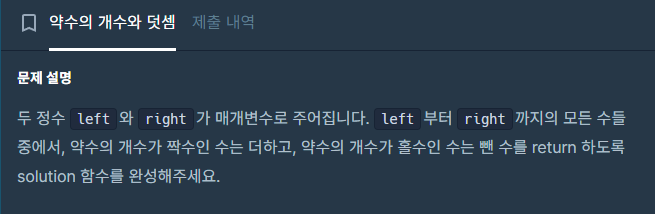 [프로그래머스] 약수의 개수와 덧셈 본문