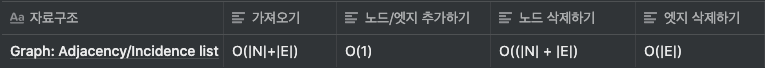 그래프로 구조를 어떻게 설계 그리고 무엇을(검색, 추가, 삭제, 등) 하고 싶으냐에 따라 시간 복잡도가 달라진다.